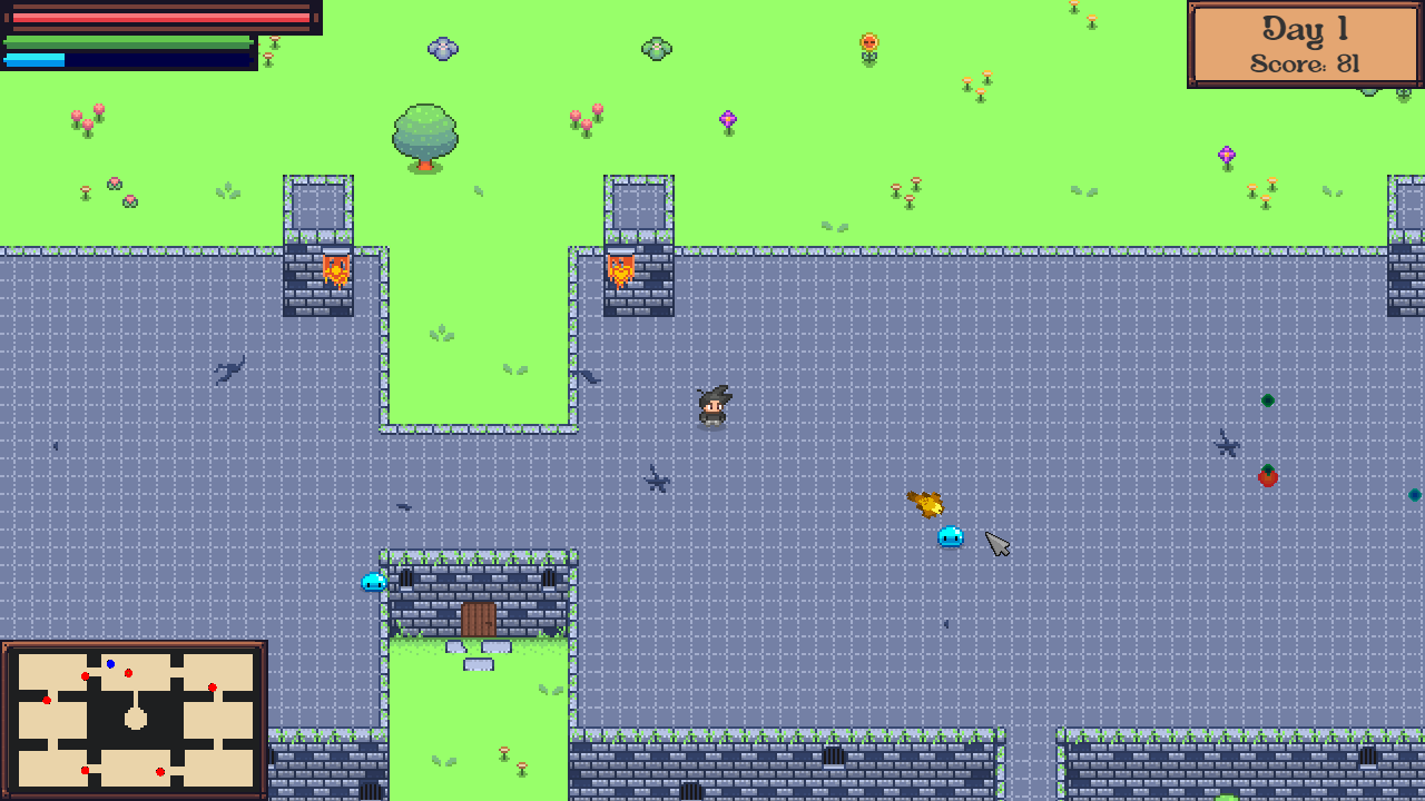 the theme was to create a game using a palette of only eight colors. because of this the game has a very distinct retro aesthetic, reminiscent of classic arcade games from the 80s and 90s.